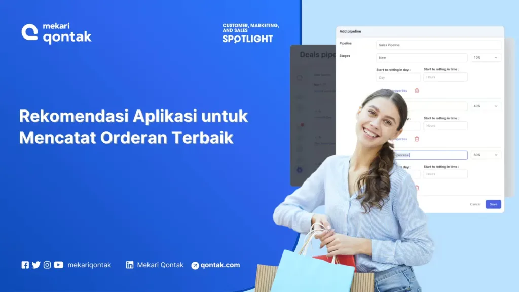 Mekari Qontak adalah penyedia aplikasi CRM terbaik di Indonesia. Aplikasi ini akan bekerja secara otomatis mencatat semua interaksi pelanggan, termasuk mencatat orderan masuk dari mereka.