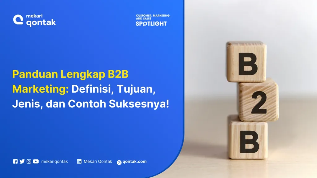 Melalui artikel ini, Mekari Qontak akan mengulas lengkap seputar B2B marketing, mulai dari definisi, tujuannya, jenis-jenis strategi yang umum digunakan, hingga contoh penerapan sukses dari brand global seperti Semrush, Adobe, dan Amazon.